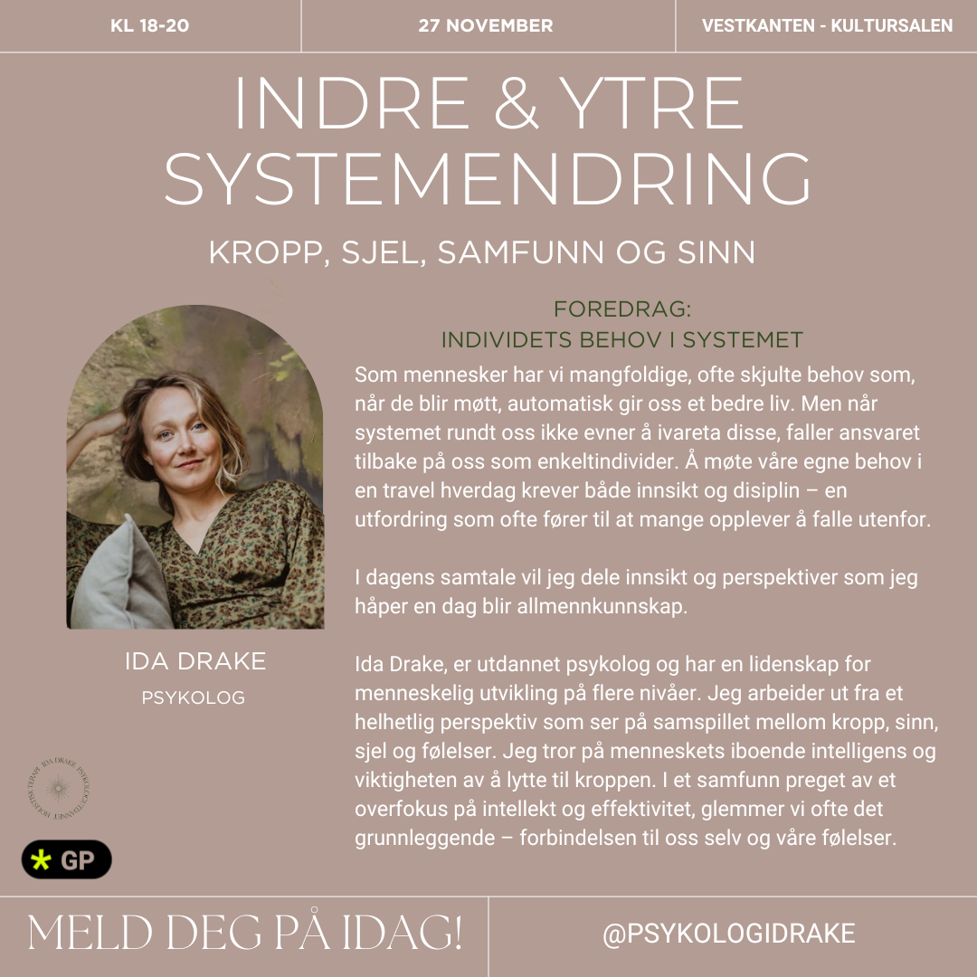 Foredrag, mini-workshop, masse inspirasjon, kunnskap og nyttige verktÞy du kan ta med deg videre pÄ veien.